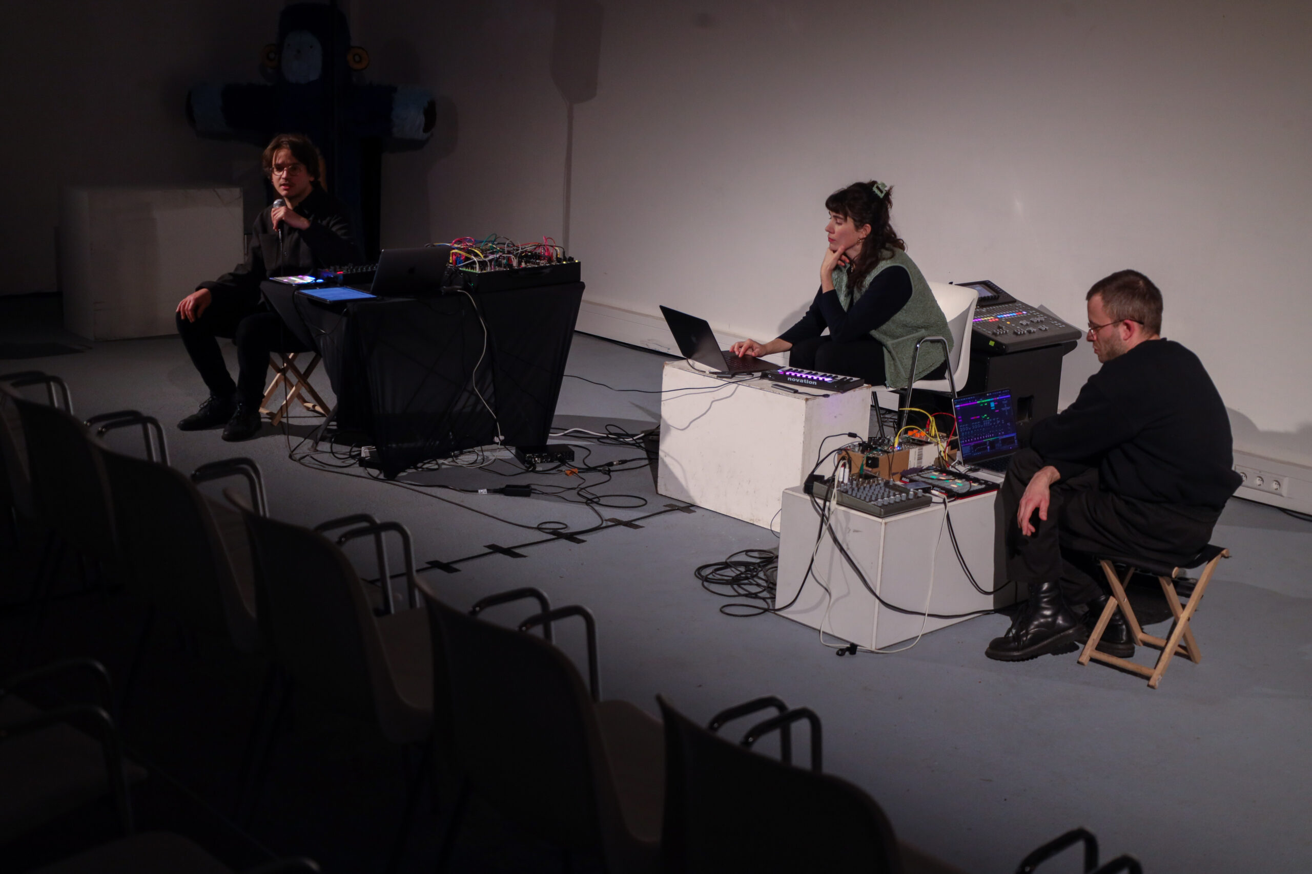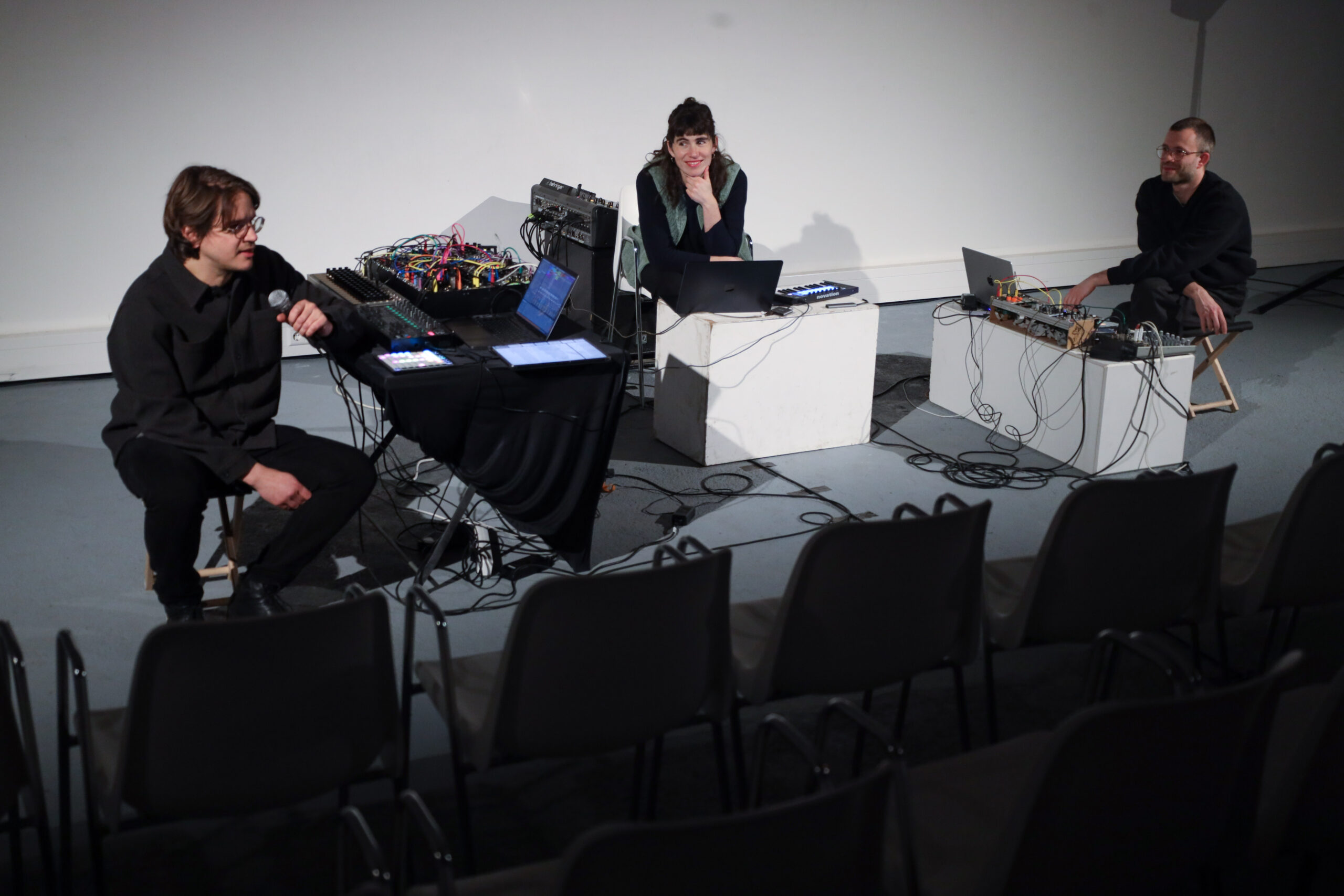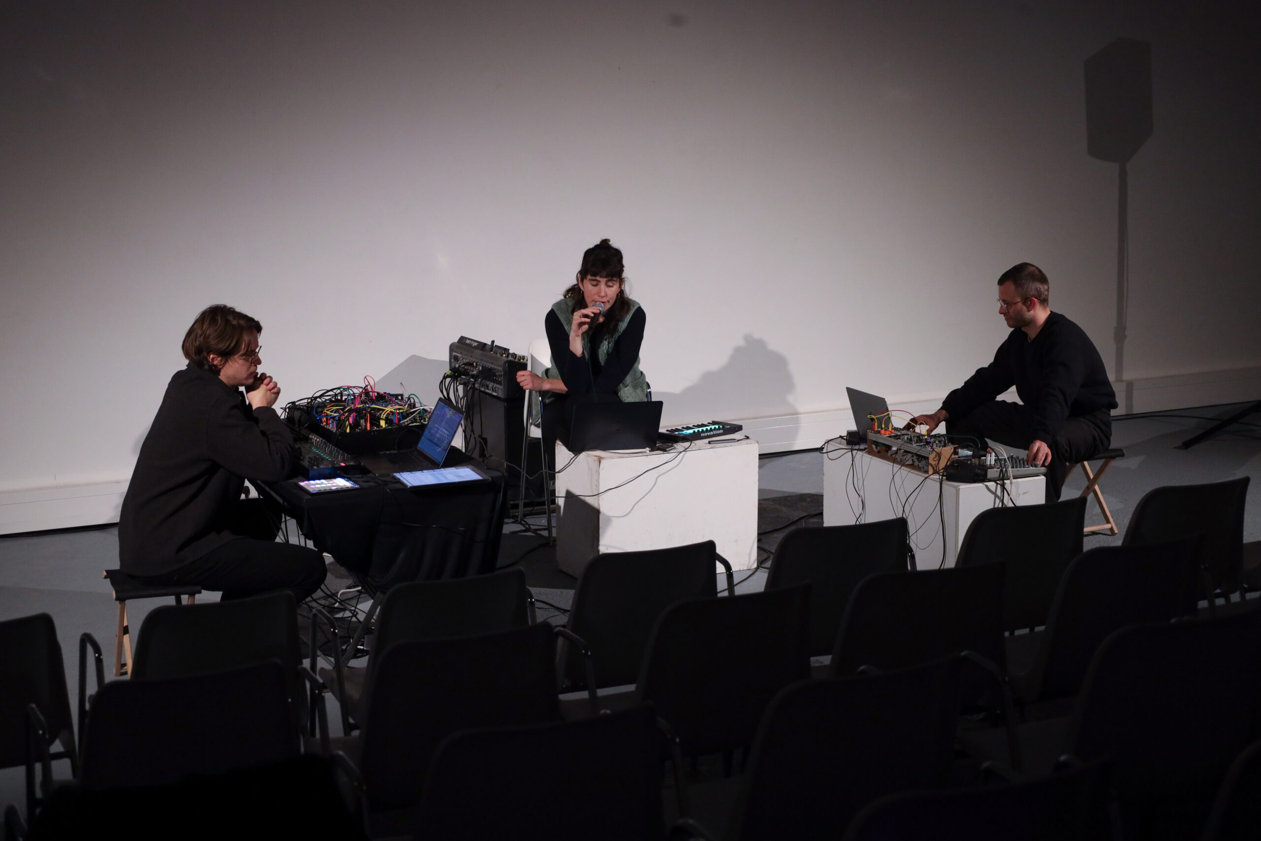 Die drei Performenden machen ihren eigenen Arbeitsprozess im Stück transparent und setzen möglichst viele der behandelten Arbeitsweisen live um. Der Text und das musikalische Material entwickeln sich aus Zitaten, Samples und Aneignungen von verfügbarer Musik und Texten und werden durch die Nutzung von generativen Algorithmen und Neuproduktionen ergänzt.